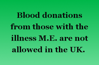 To read more, type into a search engine "Can someone with myalgic encephalomyelitis donate blood". (I had linked to an article before but they removed the page.)